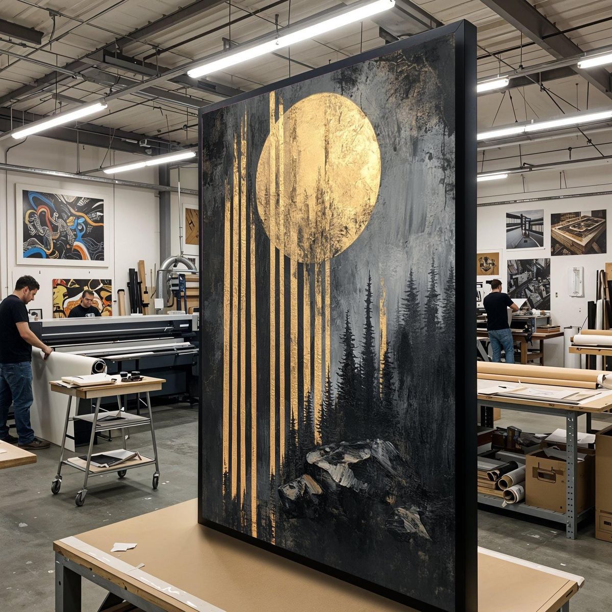 Холст 320 гр. плотности, деревянный подрамник с усилением конструкции, красная поталь. Возможно выполнить красками или интерьерная печать с декорацией.