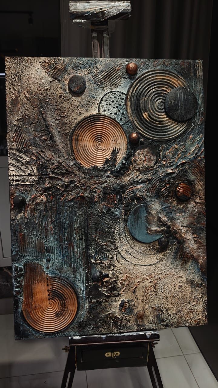 Холст 320 гр. плотности, деревянный подрамник с усилением конструкции, текстурная паста, золочение. Только ручная работа.
